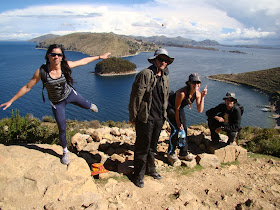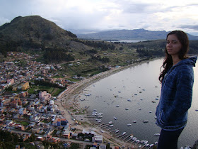No outro dia trocamos de hotel, pegamos um quarto na cobertura do Las Kantutas Hotel Tourism. Pagamos 210 Bs. por um quarto com 3 camas de solteiro (para nós 4, Keila, Gilvan, eu e a Guadalupe) e mais 15 Bs. por uma café da manhã extra. Da cobertura tínhamos uma linda vista do lago Titicaca.